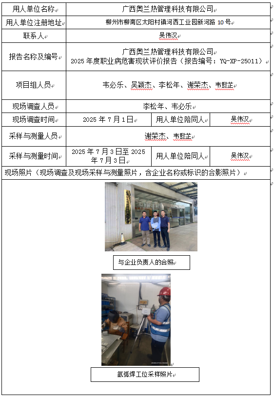 廣西奧蘭熱管理科技有限公司 2025年度職業(yè)病危害現(xiàn)狀評(píng)價(jià)報(bào)告