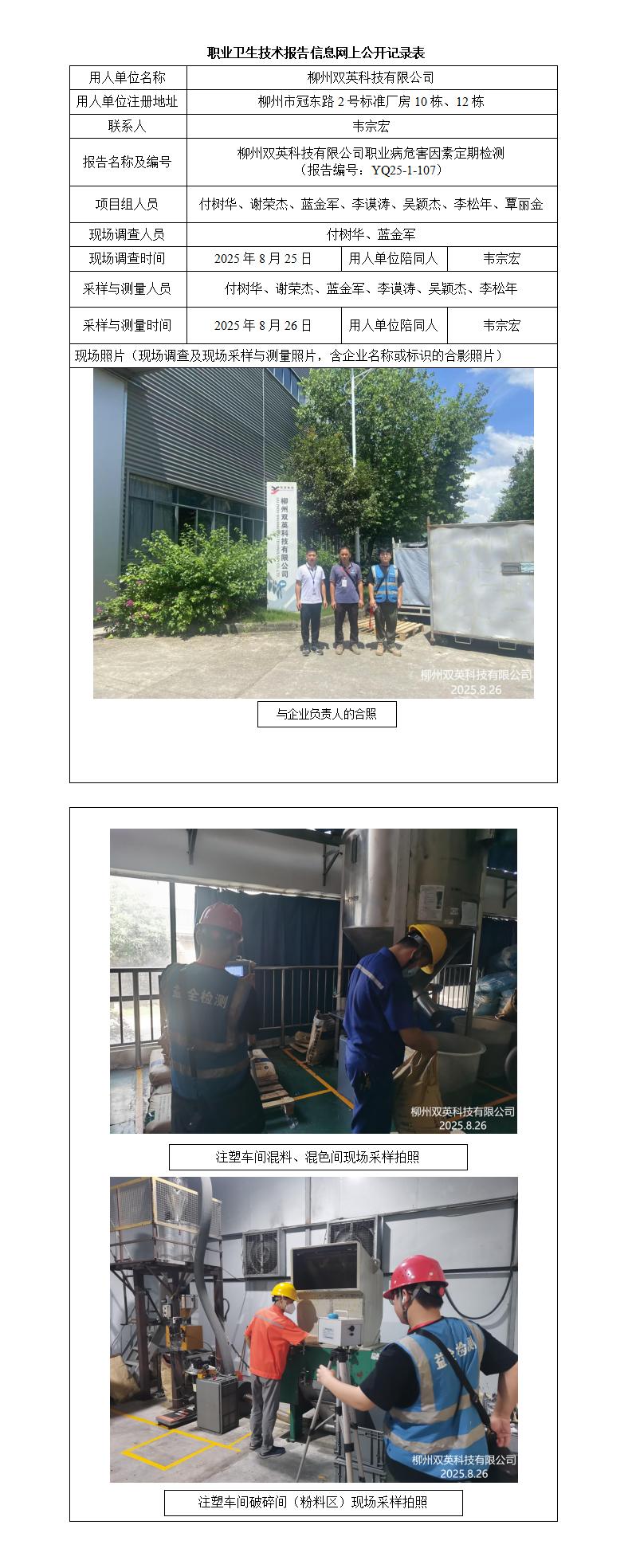 柳州雙英科技有限公司職業(yè)病危害因素定期檢測