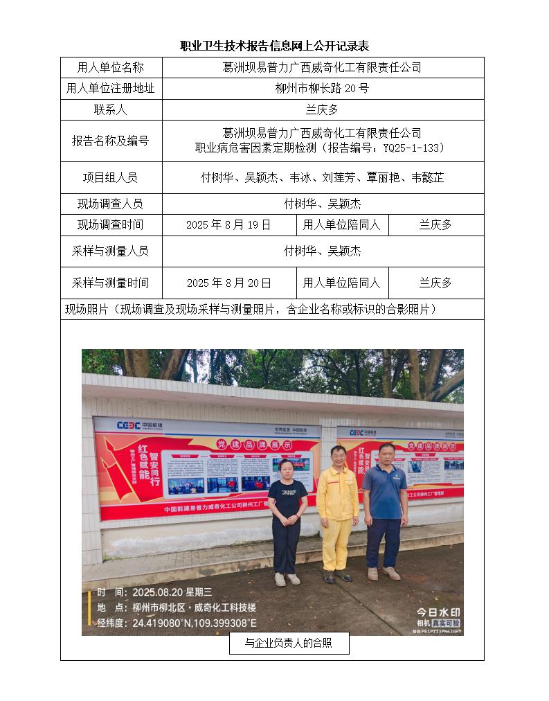 葛洲壩易普力廣西威奇化工有限責(zé)任公司 職業(yè)病危害因素定期檢測(cè)報(bào)告