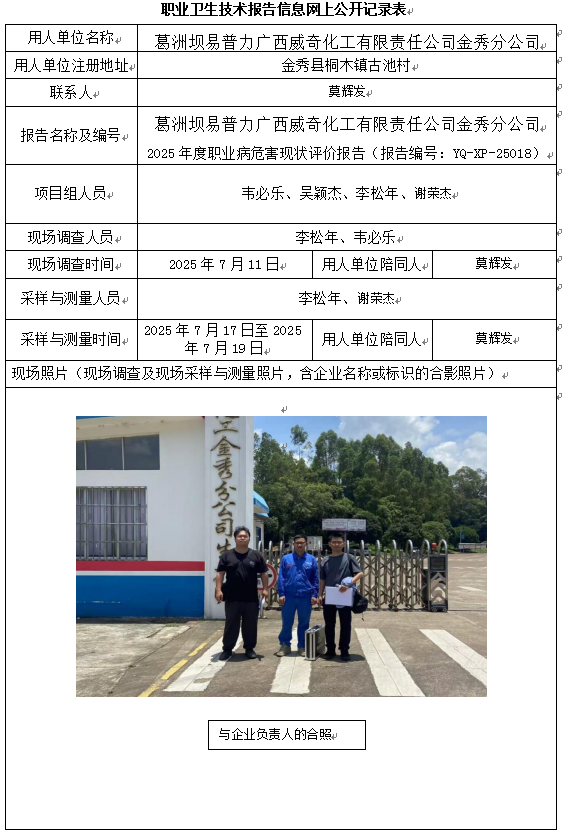 葛洲壩易普力廣西威奇化工有限責(zé)任公司金秀分公司 2025年度職業(yè)病危害現(xiàn)狀評(píng)價(jià)報(bào)告