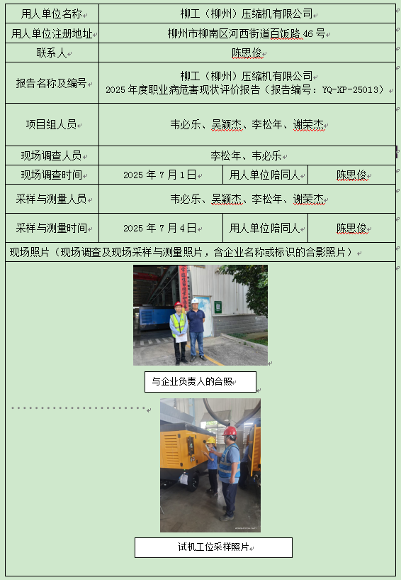 柳工(柳州)壓縮機(jī)有限公司 2025年度職業(yè)病危害現(xiàn)狀評(píng)價(jià)報(bào)告